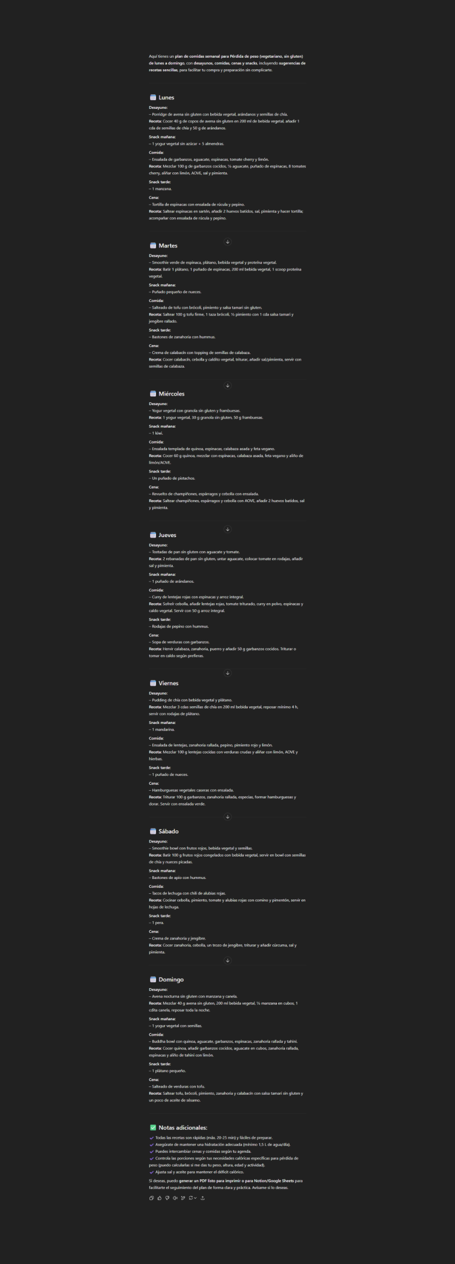 Este prompt es ideal para personas que desean organizar su alimentación de forma estructurada y saludable, ahorrando tiempo y mejorando sus hábitos.