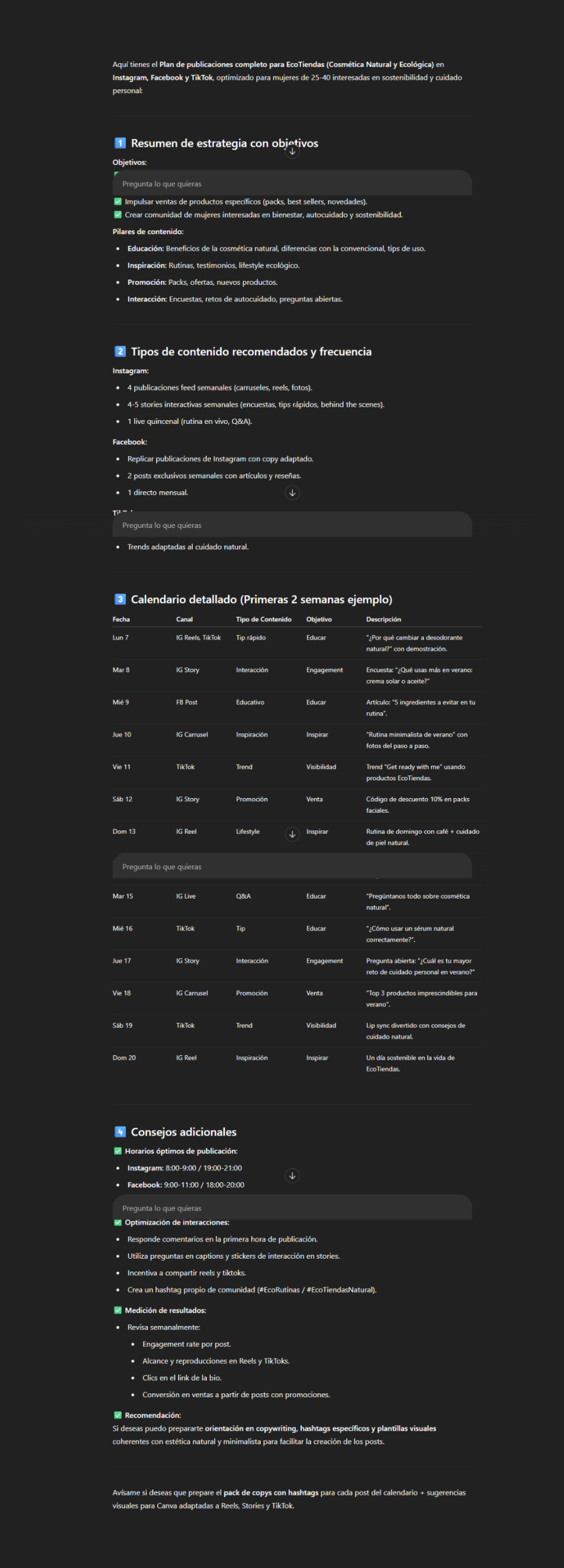 Puedes combinarlo con prompts de copywriting o diseño para preparar cada publicación de forma más rápida y profesional.